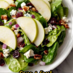 A fresh and flavorful Apple Walnut Salad featuring crisp mixed greens, tart Granny Smith apples, creamy feta cheese, toasted walnuts, and a zesty apple cider vinaigrette dressing. This salad combines sweet, savory, and crunchy elements, making it perfect for a quick lunch or holiday side dish ready in just 15 minutes.