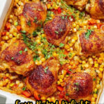 Baked Tomato Chicken Thighs with Couscous is a flavorful and comforting one-dish dinner that combines tender, spiced chicken thighs with a vibrant mix of roasted vegetables and pearl couscous. Infused with Middle Eastern spices like baharat and turmeric, fresh lemon, and aromatic tarragon, this recipe offers a delightful blend of Mediterranean and Middle Eastern flavors, perfect for family meals or dinner parties.