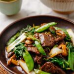 This Beef Stir-Fry with Vegetables is a quick and flavorful dish featuring tender flank steak, crisp bok choy, mushrooms, and snap peas, all tossed in a savory soy-based sauce thickened to perfection. Perfect for a satisfying weeknight dinner, it combines delicious textures and vibrant flavors with minimal fuss.