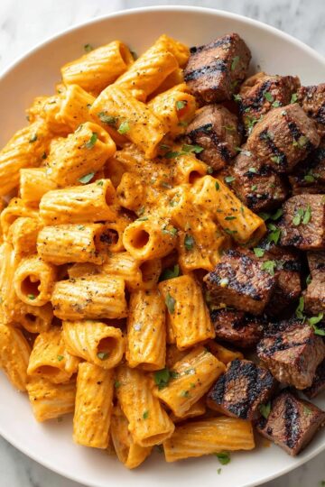 Cajun Steak Cheesy Rigatoni Recipe