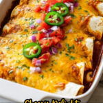 These Chicken Enchiladas are a flavorful, cheesy Mexican-inspired dish loaded with seasoned shredded chicken, black beans, green chiles, and topped with enchilada sauce and melted cheese. Perfect for a comforting dinner, they are baked to golden perfection and served with sour cream and fresh cilantro.
