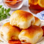 Delicious homemade pepperoni rolls featuring tender bread dough filled with classic mozzarella cheese and pepperoni, seasoned with Italian herbs and baked to golden perfection. Perfect as a snack or appetizer with a side of marinara sauce.