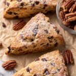 Deliciously flaky Chocolate Pecan Scones loaded with rich chocolate chips and crunchy pecans, perfect for breakfast or brunch. These scones are lightly spiced with cinnamon and finished with a dusting of confectioners' sugar for an irresistible treat.