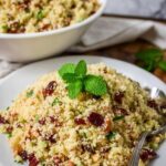 This Cranberry Couscous Salad is a vibrant and flavorful side dish featuring tender couscous infused with warm spices and dried cranberries, complemented by toasted pecans, fresh green onions, and mint. Tossed in a tangy honey and apple cider vinegar dressing, it pairs beautifully with poultry and pork, making it a perfect addition to any meal.