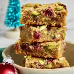 Delight in these Cranberry White Chocolate Blondies, a perfect holiday treat combining tart fresh cranberries, sweet white chocolate, and salty pistachios. These blondies offer a chewy texture with a golden top, ideal for festive snacking or gifting.