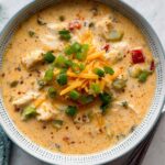 - Combine and Serve: Stir the shredded chicken back into the soup. Serve immediately, optionally topped with green onions, sharp cheddar cheese, and additional hot sauce if desired.
