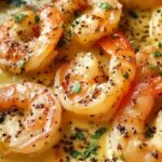 This creamy garlic shrimp recipe features succulent shrimp cooked in a rich sauce of garlic, stock, heavy cream, and parmesan cheese, garnished with fresh parsley. Perfect served over rice, mashed potatoes, or polenta for an easy yet elegant meal in just 15 minutes.
