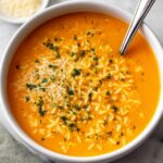 This comforting Pastina Soup features a flavorful vegetable-spiked chicken broth enriched with parmesan cheese and tender tiny pasta, perfect for an easy weeknight meal ready in just 30 minutes.