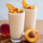 This Peach Smoothie is a creamy and delicious way to start your day or enjoy a refreshing summer snack. Made with fresh peaches, banana, skimmed milk, light coconut milk, Greek yogurt, and a touch of honey, it blends to a smooth and flavorful drink packed with natural sweetness and nutritious ingredients.