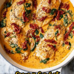 Creamy Tuscan Chicken features tender seared chicken breasts simmered in a rich and flavorful sauce made with heavy cream, sun-dried tomatoes, spinach, garlic, and parmesan. This comforting Italian-inspired dish is perfect for a satisfying dinner that's easy to make and packed with vibrant flavors.