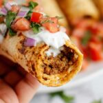 - Assemble the Taquitos: Warm the tortillas briefly to make them pliable. Spoon about 2 tablespoons of the beef mixture onto each tortilla and tightly roll it up, folding in the edges to seal the filling inside.