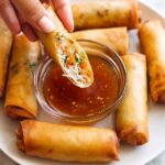 - Make Dipping Sauce: In a small bowl, combine honey, oyster sauce, Chinese mustard, Gochujang, and rice wine vinegar. Stir well and serve alongside spring rolls.