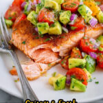- Serve: Remove the cooked salmon from heat, top each fillet with a generous spoonful of the avocado salsa, and serve immediately for best freshness and flavor.