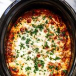 - Garnish and Serve: Remove the lid carefully, garnish with freshly chopped basil or parsley, then slice and serve the lasagna warm. Enjoy your easy crockpot meal!