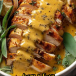 While your turkey rests for 15 minutes (don’t rush this!), pour the pan drippings into a measuring cup through a strainer. Melt butter in a saucepan, whisk in flour to form a roux, then slowly add the drippings and chicken broth, stirring until thick and smooth. I like using an immersion blender with a few roasted veggies from the pan to make the gravy silky. Let it simmer until just right, then season to taste.