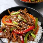 A quick and easy beef stir fry that combines tender strips of beef with colorful bell peppers and onions in a tangy, savory, and slightly sweet sauce. Perfect for busy weeknights and served best over rice or noodles.