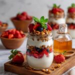 A quick and easy Greek Yogurt Parfait recipe featuring creamy plain Greek yogurt layered with fresh fruit and crunchy granola, optionally sweetened with honey or maple syrup. Perfect for breakfast or a healthy snack, this parfait is nutritious, satisfying, and can be prepared in minutes.