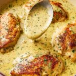 Creamy Pesto Chicken is a simple yet flavorful dish featuring tender chicken cutlets cooked in a rich and silky pesto cream sauce. With just five main ingredients, this recipe is perfect for a quick and elevated dinner that combines savory seared chicken with the bright taste of fresh pesto and creamy heaviness.