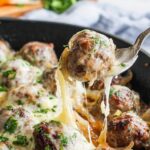 - Combine and bake: Return the meatballs to the skillet with the onions, add the remaining beef broth, and top the meatballs with Swiss cheese. Transfer the skillet to the oven and bake for 10-15 minutes, or until meatballs reach an internal temperature of 160˚F.