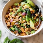 Leftovers keep surprisingly well in an airtight container in the fridge for up to 3 days. I find that the bok choy softens a bit overnight, so if you want to keep that fresh crunch, it’s best to add some raw veggies fresh when reheating.