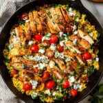 This Greek Chicken and Lemon Rice recipe is a flavorful, one-pot meal perfect for a quick and delicious dinner. Juicy, seasoned chicken thighs are cooked to perfection and combined with a zesty lemon-infused rice mixed with fresh spinach, tomatoes, and chickpeas. Topped with a tangy feta cheese mixture and fresh oregano, this dish offers a delightful Mediterranean flavor in just 30 minutes.