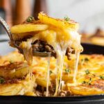 - Layer potatoes: Peel and slice the yellow potatoes, then layer them evenly over the cooked ground beef in the skillet.