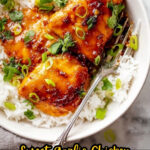 Plate the baked chicken thighs over prepared rice, slather on that sticky sauce, and sprinkle with sliced green onions and fresh cilantro. Finish with a squeeze of lime juice to brighten everything up. I could eat this every week—the balance of sweet, tangy, and garlicky is just unbeatable.