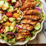 If you have leftovers (and you probably will), store the chicken and salad components separately. Keep the chicken in an airtight container in the fridge and the salad without dressing so it stays crisp. Add the dressing fresh when you’re ready to eat again.