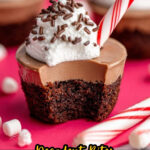 Delight in these Hot Chocolate Brownie Bites, a cozy and decadent treat featuring box-mix brownies topped with melted chocolate kisses and a luscious stabilized white chocolate whipped cream. Perfectly garnished with mini marshmallows, peppermint sticks, and chocolate sauce, these bite-sized desserts capture the essence of hot cocoa in a fun, festive form.