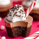 Delight in these Hot Chocolate Brownie Bites, a cozy and decadent treat featuring box-mix brownies topped with melted chocolate kisses and a luscious stabilized white chocolate whipped cream. Perfectly garnished with mini marshmallows, peppermint sticks, and chocolate sauce, these bite-sized desserts capture the essence of hot cocoa in a fun, festive form.