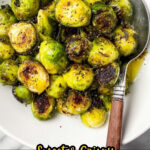 For holiday dinners, I like to present the Brussels sprouts in a beautiful shallow bowl topped with pomegranate seeds and fresh herbs. It gives a festive pop of color and an extra burst of flavor every guest admires.