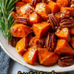 - Serve: Remove from oven and transfer the sweet potatoes to a serving bowl or platter. Optionally garnish with chopped candied pecans or walnuts. Serve immediately while warm.