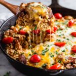 This One-Pot BBQ Chicken and Rice is a flavorful and easy weeknight dinner that combines tender chicken thighs, smoky BBQ sauce, and a comforting mix of rice, corn, and black beans. Topped with melted colby jack cheese and fresh avocado, tomatoes, and herbs, it’s a complete meal cooked all in one skillet for minimal cleanup.