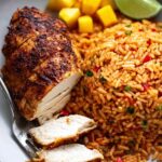 - Serve: Fluff the rice gently with a fork. Serve the chicken and rice with a scoop of diced mangoes, chopped fresh cilantro, and lime wedges for squeezing to add a refreshing finish.