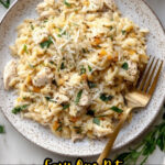 This dish has quickly become one of my go-tos on busy weeknights. It combines all those rich, deep flavors of French onion soup but swaps out the toast and broth for tender chicken and creamy orzo pasta, making it a full meal in one pot.