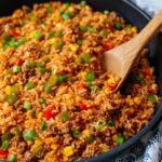 - Garnish and Serve: Sprinkle the diced spring onions on top for freshness. Serve hot and enjoy your cheesy, spicy one pot taco beef rice skillet!