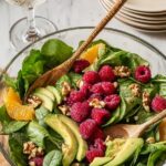 - Assemble Salad: Add the chopped avocado, fresh raspberries, baby spinach, and reserved orange segments to the bowl with the dressing. Gently toss everything together to coat evenly.