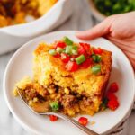 - Bake: Place the assembled casserole in the preheated oven and bake uncovered for 35 minutes, or until a toothpick inserted into the cornbread comes out clean.
