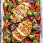 A comforting sheet pan chicken and roasted vegetables recipe featuring succulent seasoned chicken roasted alongside a medley of sweet potatoes, Yukon potatoes, bell peppers, onions, and Brussels sprouts. This easy one-pan meal is perfect for a family dinner and delivers a hearty, flavorful dish with minimal cleanup.