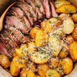 This Steak and Potatoes Skillet recipe features juicy, garlic butter-infused steak bites paired with tender, buttery Yukon gold potatoes seasoned with fresh herbs. Made in just one skillet and finished in the oven, this easy and flavorful dish is perfect for a satisfying dinner.