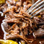 - Shred and Serve: When cooking is complete, turn off or set the slow cooker to warm. Use two forks to pull the beef apart into shredded pieces. Toss the shredded meat with the cooking juices and peperoncinis in the slow cooker to coat and serve warm.