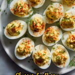 Classic Southern Deviled Eggs are a delicious and creamy appetizer featuring hard-boiled eggs filled with a tangy mixture of mayo, Dijon mustard, and dill relish, topped with a sprinkle of paprika. Perfect for family gatherings and holiday parties.