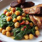 A vibrant and nutritious Spicy Chickpeas dish cooked with fresh tomatoes, fragrant spices, and tender spinach. This easy skillet recipe offers a hearty and flavorful meal perfect for lunch or dinner, packed with protein and antioxidants from chickpeas and spinach.