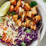 - Assemble the Bowl: Divide the slaw evenly onto 4 plates. Arrange the cooked fish on the side of each plate. Drizzle the spicy mayo over the fish. Garnish with lime wedges and cilantro if desired.