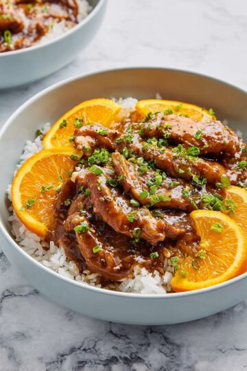 For special occasions, I’ve served this orange chicken over a bed of crispy wonton strips to add crunch, sprinkled with extra green onions and chopped fresh cilantro. It’s a simple touch but makes it feel festive and restaurant-worthy.