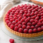 This Classic Raspberry Tart features a buttery, tender crust filled with a rich almond frangipane and topped with fresh raspberries. Glazed with apple or apricot jelly, it's a perfect elegant dessert inspired by traditional French patisserie.