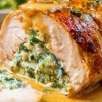 A delicious and creamy Spinach Stuffed Chicken Breast recipe featuring tender chicken breasts filled with a blend of fresh spinach, cream cheese, feta, and mozzarella, seasoned with a flavorful spice mix and baked to perfection.