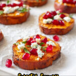 Delicious and easy-to-make Sweet Potato Bites with a perfect balance of sweetness from honey, the tanginess of feta cheese, and the freshness of pomegranate arils and parsley. These roasted sweet potato slices are seasoned with thyme, garlic, cayenne, and sea salt, making a flavorful appetizer or side dish.