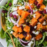 This Easy Sweet Potato Salad features tender roasted sweet potatoes combined with baby arugula, dried cranberries, pepitas, and feta cheese, tossed in a flavorful honey mustard dressing. It’s a perfect balance of sweet and savory, making it an ideal fall salad that can be served as a side dish or light main course.