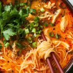 This Thai Red Curry Noodle Soup is a vibrant and comforting dish featuring tender chicken, fragrant red curry paste, creamy coconut milk, and fresh herbs. Perfectly balanced with lime juice and fresh basil, this soup combines spicy, savory, and tangy flavors for a satisfying meal that's better than takeout.